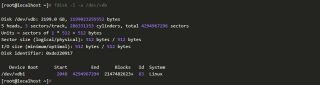 逐扇区确认,可以用如下命令办理。假设磁盘是/dev/vdb。