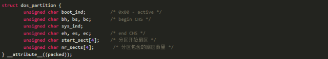 具体看看分区的数据结构。以fdisk为例,分区的数据结构定义为