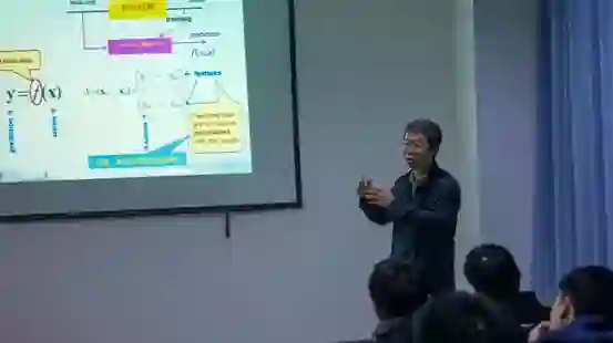 专委会委员曾丰助理教授和王颖教授的邀请,专委会主任、清华大学张学工教授为厦大师生带来了题为《机器学习方法体系概览》的学术报告,系统性的介绍了人工智能和机器学习的发展历史,从控制论、符号主义、感知器等到深度学习等近年的热点娓娓道来,对监督式学习、非监督式学习、表示学习和深度神经网络等进行深入浅出的解读。张教授的报告生动风趣,融入了对人工智能和机器学习的深度思考,极富启发性。作为本次活动的第二部分,张教授和现场同学们进行了关于“学术人生”的互动交流。张教授对同学们感兴趣的问题,例如学术方向的选择、机器学习的学习方法等分享了自己的经验,鼓励同学们敢于面对“坏的实验结果”,对科研中的困难进行深入探索。整场活动气氛热烈,座无虚席,深受厦大学生喜爱。会后,数十名学生争相找张教授签名。