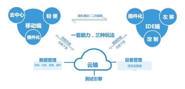 在保留了上述“云测”的玩法之外,移动测试 2.0+ 时代下的测试技术提供的往往不再是某一个独立的小工具,更多的是带来一套完整的解决方案,例如为用户提供一套定制化的 IDE 环境,结合录制回放、图像识别等技术,用户可能只需要做一些简单的框选、拖拽就能完成测试脚本的开发。另一方面,由于办公环境、硬件条件等因素的限制,越来越多的测试人员希望可以在移动端上直接发起测试,做到移动测试“移动测”。当然,无论是云端、IDE 端、还是移动端,都应该做到能力互通,即“多端多通”,这样才能让测试方案更加灵活、适用于更多场景。