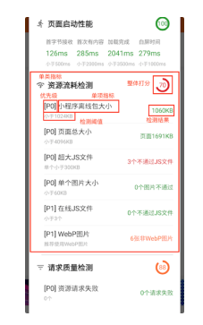 H5/小程序等技术在移动应用中的占比越来越高,如何测试这类应用的性能成为了一个新的课题。接触过前端性能的同学都知道,Lighthouse 是前端性能测试的利器,但是它无法在手机上直接应用。而 Soloπ 所做的,就是基于 CDP 协议,在客户端中实现了一套 Lighthouse 性能测试工具,它可以获取 H5/小程序页面的启动性能、资源流耗、请求质量、JS 质量、JSAPI 调用情况与页面信息,并内置了 30 余条前端开发最佳实践,旨在发现细粒度的性能问题。