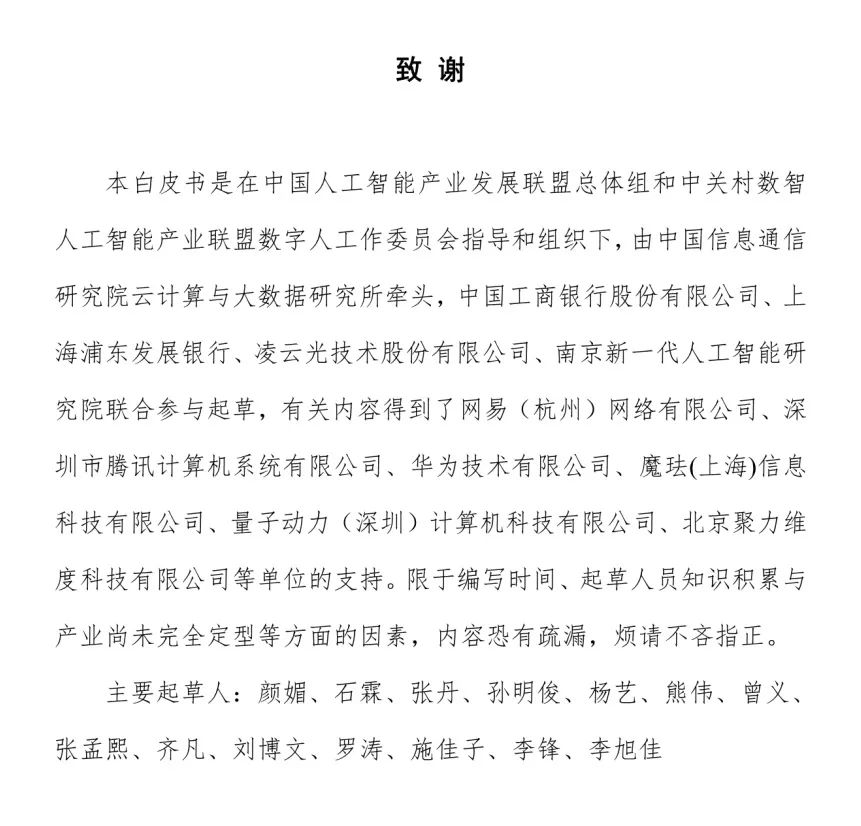 为加快推动虚拟数字人技术和产业创新发展,中国人工智能产业发展联盟(以下简称"AIIA 联盟")总体组协同中关村数智人工智能产业联盟(以下简称"ZAI联盟")数字人工作委员会于2020年发起虚拟数字人推进计划,致力于开展虚拟数字人技术研究、标准制定、评估测试、合作交流、成果发布及生态建设工作。