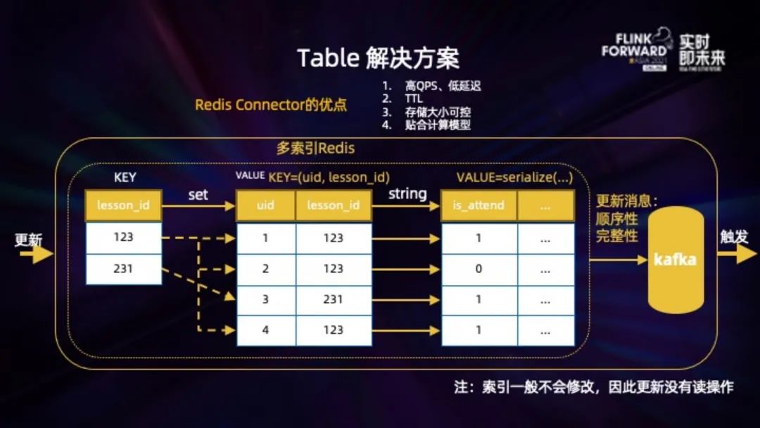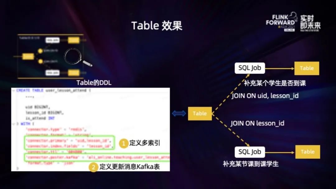 这些功能都封装在 Redis Connector 里,业务上可以简单的通过 DDL 定义这么一个 Table 出来。