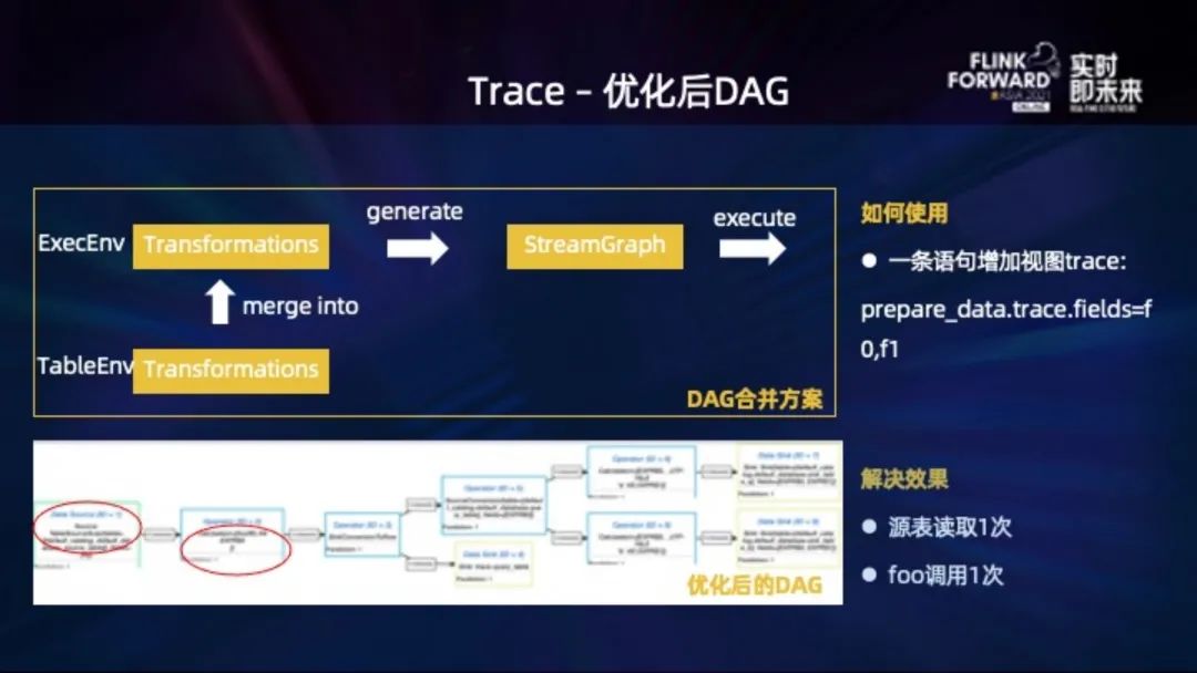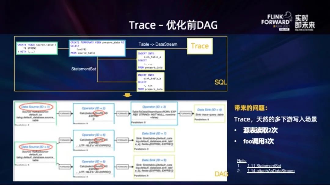 左下就是我们优化后的 DAG,读取源表以及调用 foo 方法都只有一次: