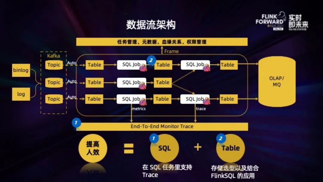 框架也需要支持用户的 SQL 作业方便的输出 metrics 以及日志,以做到全链路的监控以及 Trace。
