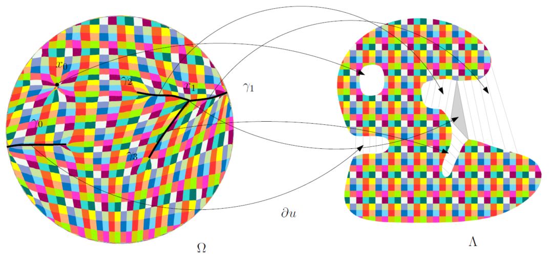 图5. 最优传输映射的奇异点结构(齐鑫、苏科华作)。