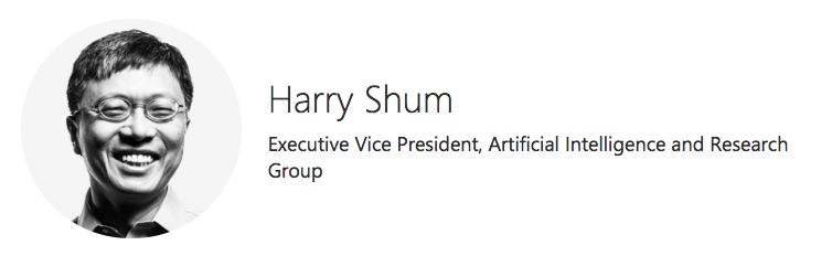 根据微软官网介绍,沈向洋博士是人工智能与研究小组执行副总裁,负责推动公司的整体人工智能战略以及涵盖基础设施、服务、应用的前瞻性研发工作。他负责监管人工智能产品组,包括Bing和Cortana。他还领导全球首屈一指的计算机科学研究组织之一Microsoft Research,并与整个公司的工程团队合作。