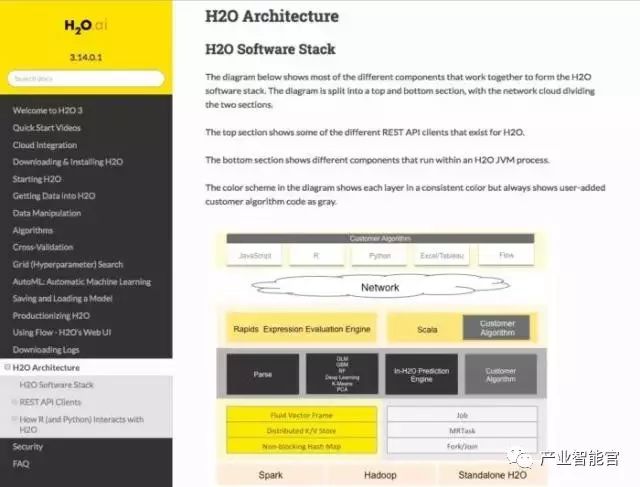 H2O 可以作为原生 Python 库,或者是通过 Jupyter Notebook,或者是 R Studio中的 R 语言来工作。这个平台也包含一个开源的、基于 web 的、在 H2O 中称为Flow 的环境,它支持在训练过程中与数据集进行交互,而不只是在训练前或者训练后。