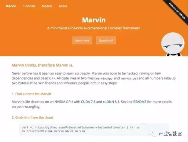 另一个相对近期的产品——Marvin 神经网络框架,是普林斯顿视觉集团的产物。Marvin“生来就是被黑的”,正如其创建者在该项目文档中解释的那样,该项目只依赖于一些用 C++ 编写的文件和 CUDA GPU 框架。虽然该项目的代码很少,但是还是提供了大量的预训练模型,这些模型可以像项目本身代码一样,能够在合适的场合复用或者根据用户的需要共享。