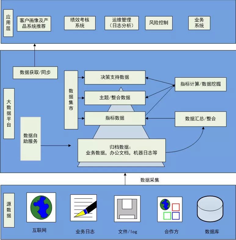 4)存在大量的数据孤岛:银行等金融机构存在不同类型的应用系统,数据被分散在各个应用系统的数据库和文件系统中,导致数据不能有效的共享;跨系统的、综合性的数据搜索、分析困难等。