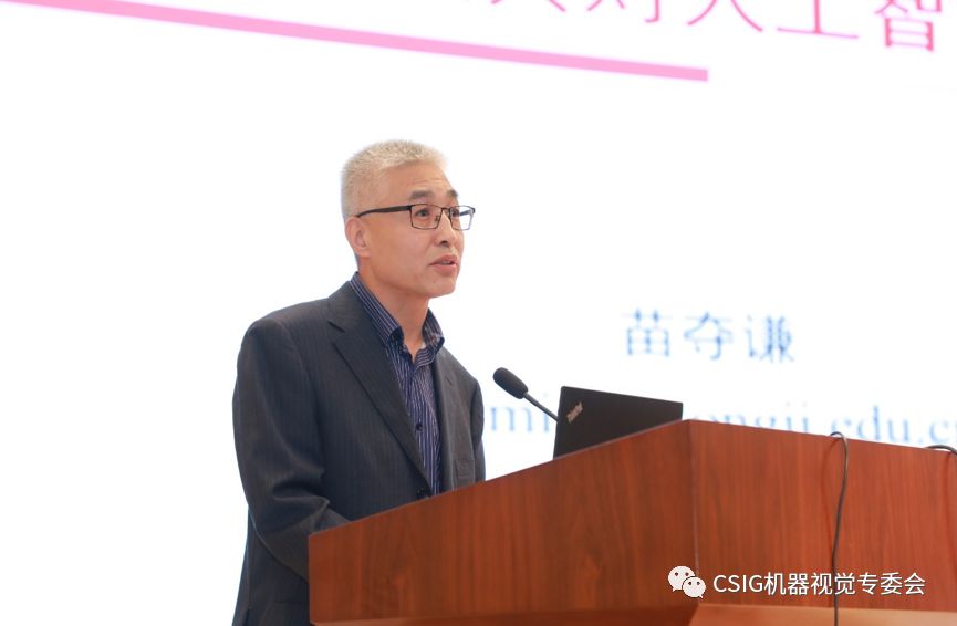 国际粗糙集学会会士(IRSS Fellow)、嵌入式系统与服务计算教育部重点实验室副主任、同济大学苗夺谦教授做了题为“粒计算理论及其对人工智能的贡献”的主题报告,回顾了粒计算理论的起源和发展,并对粗糙集理论进行了全面而深入的讲解,探讨了粒计算理论的哲学思想、以及其对人工智能研究和应用的进展所做出的巨大贡献。