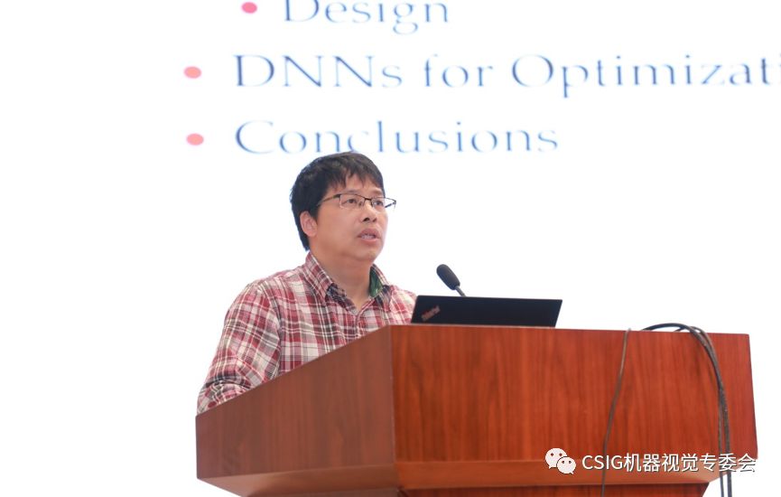 国际电气电子工程师协会会士(IEEE Fellow)、国际模式识别学会会士(IAPR Fellow)、国家杰出青年基金获得者、CSIG机器视觉专业委员会主任、北京大学林宙辰教授做了题为“The Interplay between DNN and Optimization”的主题报告,深入浅出地介绍了当前深度神经网络的优化机制,提出了全新的可微优化理论和算法,用于指导深度神经网络的结构设计和优化目标。基于此理论和算法设计出的深度神经网络在主流分类任务上的效果优于之前手动或自动设计的深度神经网络。