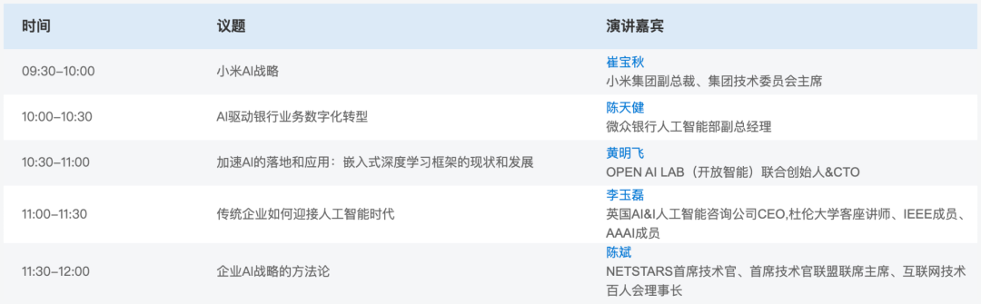 看这些演讲嘉宾,既有科研出身的学术大牛,也有实战经验丰富的业内老将;既有做派严谨的公司高管,也有练得一身本领的创业公司领头人;既有利用AI技术带动公司进化的布道师,也有借助AI技术大刀阔斧改革的先驱者。