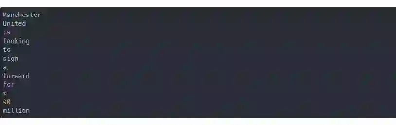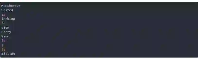 我们知道“Manchester United”是一个单词,所以它不应该被标记成两个单词。同样,“Harry Kane”是一个人的名字,“$ 9000 million”是货币值。这些也不应该被标记。