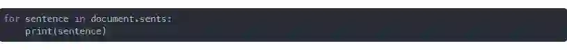 除了打印单词外,还可以从文档中打印句子。现在,我们可以使用下面的脚本遍历每个句子: