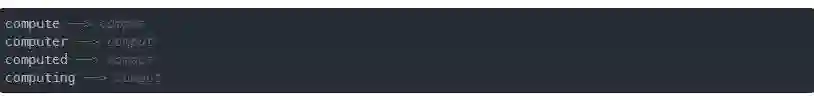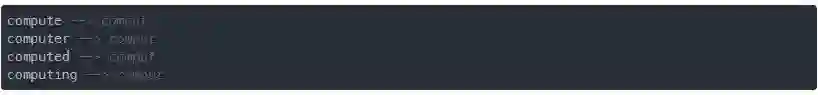 你可以看到,这四个单词都被简化成“comput”,这其实根本就不是一个单词。