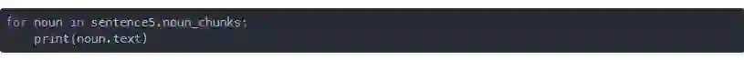 除了检测命名实体外,还可以检测名词。为此,可以使用noun_chunks属性。考虑一下下面这句话:我们试着找出这个句子中的名词: