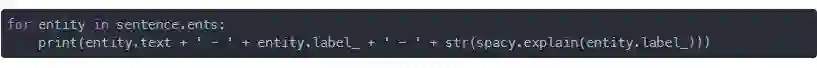这就是命名实体识别发挥作用的地方。要从一个文档中获取命名实体,必须使用ents属性。我们来从上面的句子中检索命名实体。执行以下脚本:在上面的脚本中,我们打印出实体的文本、实体的标签和实体的详细信息。输出如下: