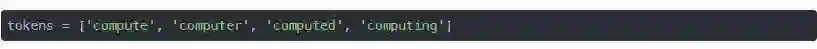 假设我们有以下的列表,我们想要将这些单词缩减为词干: