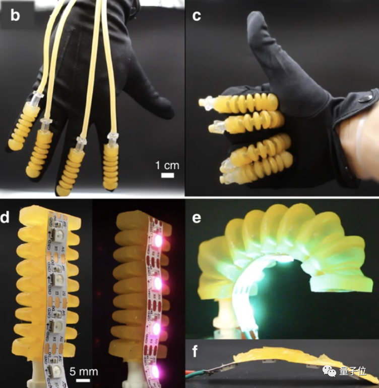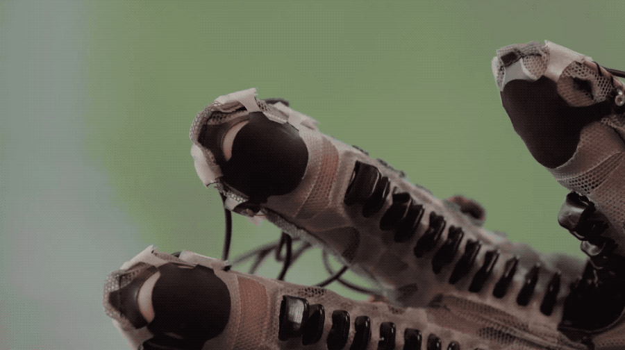 如果你握住一个虚拟物品,手指的致动器会充气变硬来模拟阻力。