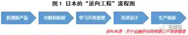 不过,在陷入“山寨”的黑历史后,日本人开始逐渐转变思维——他们不仅从书本上吸取知识,还买来竞争对手的产品进行拆解,对每个部件进行研究,进而吸收其设计思想以至于生产制造出全新的商品。这种模仿式创新的模式,被当时的日本人冠以一个很有“工业党”既视感的名字——“逆向工程”(参见图1)。
