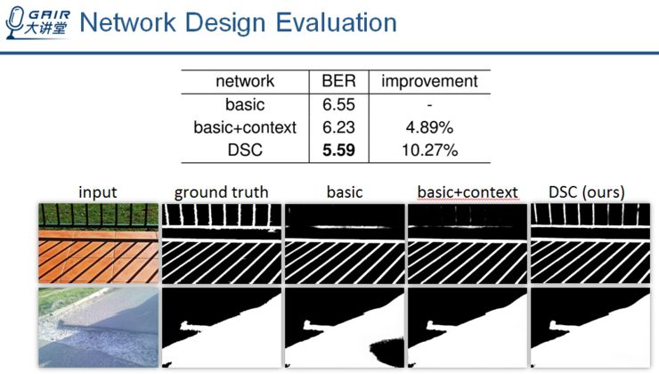 图中 Basic 指的是去除掉所有 DSC 模块的网络,而 basic + context 则指考虑上下文信息,但忽略掉不同方向上下文的影响。