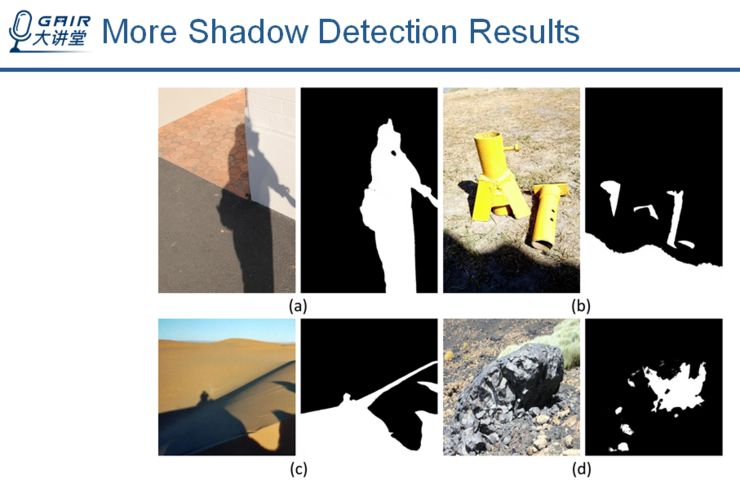 我们并不知道这个黑色区域到底是一个阴影还是一个黑色物体,所以我们需要通过分析更大的区域或者周围区域来决定它是否是阴影——换句话说,阴影检测需要去理解全局图像的上下文信息。