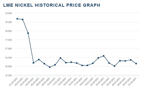 伦镍在2021年3月3日至4日两天内下跌超过16%