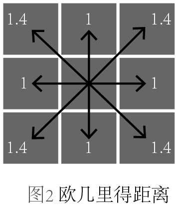 图2,欧几里得距离,这种距离是最常见的,勾股定理中用的就是这种距离。