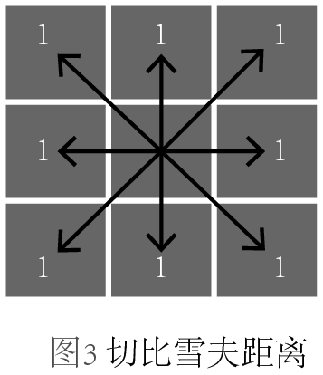 图3,切比雪夫距离,各个坐标轴差值的最大值。