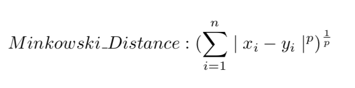 明可夫斯基距离,又称明氏距离,是一个定义在赋范空间的距离,赋范空间是指一个由范数构成的向量空间,明氏距离具有平移不变性和同质性,它的公式如下: