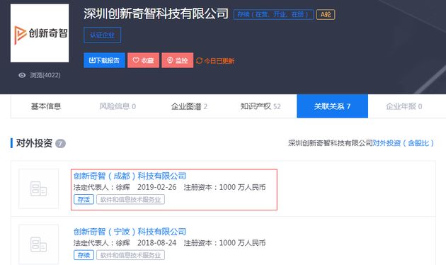 3、创新奇智成立新公司 注册资本1000万