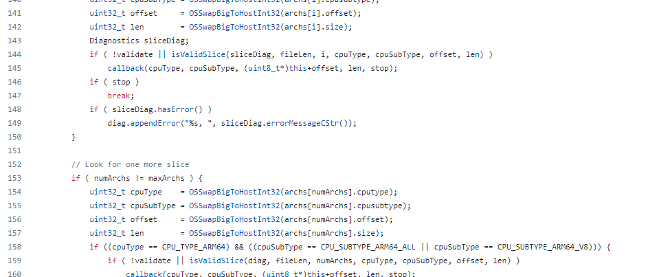 GitHub上的realityOS源码链接:https://github.com/apple-oss-distributions/dyld/blob/5c9192436bb195e7a8fe61f22a229ee3d30d8222/common/MachOFile.cpp#L578