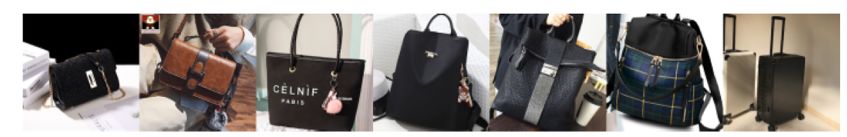 以下是我们在调控某个维度后检索得到的两批商品,可以看出这个被调控的维度和背包的颜色这一属性比较相关: