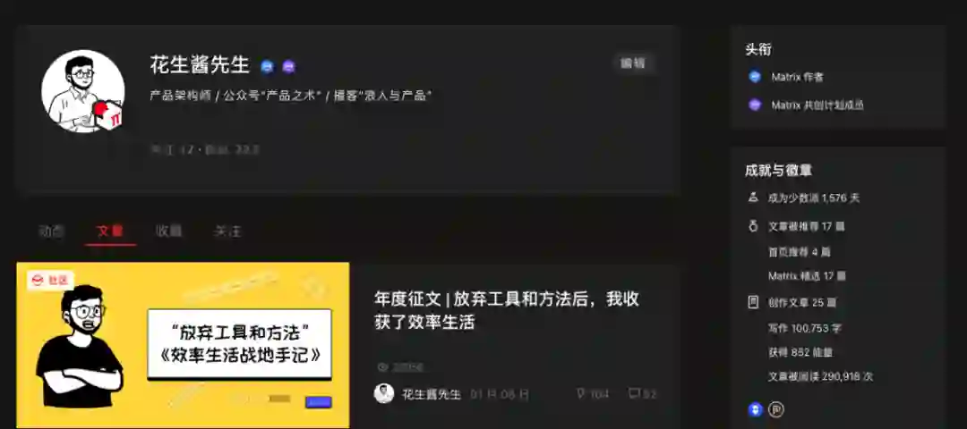 写作的效率,不体现在文字数量、文章数量和关注者数量上。 而体现在过程中,体现在让思维清晰、让自己变得细腻上。 具备「高效梳理清楚自己观点」能力的人,大多已经是入门的高效写作者了。