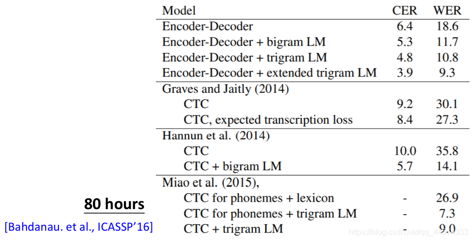 单纯的CTC效果并不尽如人意,但加上后处理和语言模型后,效果超过了Encoder-Decoder的LAS