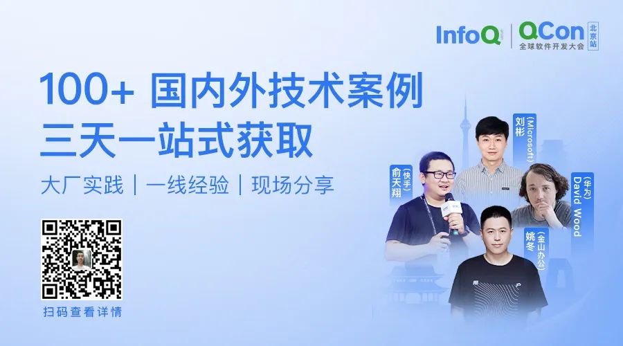 没有来到 QCon 广州现场的伙伴不要遗憾,9 月 17-18 日,QCon 将在北京富力万丽酒店继续带来精彩内容。QCon 北京站内容涵盖前端新基建与前沿技术、WebAssembly 的落地进展、Rust 实战与语言实现、数据湖存储底座、资效平衡的架构设计、云原生微服务架构新趋势、云原生时代的可观测技术落地、测试环境治理、云原生架构变革、AI 基础架构、开源运营、分布式数据库、下一代大数据系统、业务安全合规、工程师成长实践、研发效能提升、DevOps、移动生态、基础设施运维……来自华为、腾讯、百度、阿里、蚂蚁、火山引擎、网易、美团、快手、小红书、涛思、OPPO、大疆、德邦、华泰证券、PingCAP、OpenResty、Second State、DCloud 等国内外一线大咖分享 100+ 精彩演讲,点击底部【阅读原文】直达大会官网。