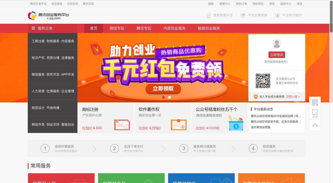 使用它可以注册公司,代理记账,同时还可以注册商标,许可证,提供法律顾问等等,同时它还提供微信开发。