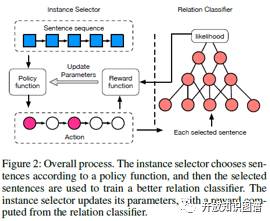 为了减少训练样本中的噪音,本文希望训练一个模型来对样本进行筛选,以便构造一个噪音较小的数据集。模型在对样本进行筛选时,无法直接判断每条样本的好坏,只能在筛选完以后判断整个数据集的质量,这种 delayed reward 的情形很适合用强化学习来解决。