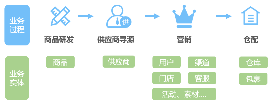 严选的业务场景较多,如消费者洞察、供应商寻源、爆品打造等,涉及到的核心业务实体比较多,如用户、商品、供应商、渠道等等。