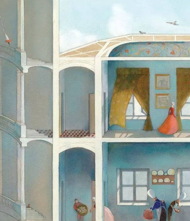 童书作家彼得西斯说,读莉丝白•茨威格的书,就像在某个周日午后拜访一座故事博物馆,楼梯由层层灰色、灰蓝、靛蓝建造,一个个白色的房间,挂满了彼得﹒勃鲁盖尔的画,画中的人物在旋转,在舞蹈,红裙子、黑帽子纷纷都来争夺你的目光。或者,你那想像力丰富的老祖母让你坐在舒适的老沙发里,一边讲故事,一边喂你吃蛋糕,直到街灯亮起,在鹅卵石街道上投下浓浓的阴影……