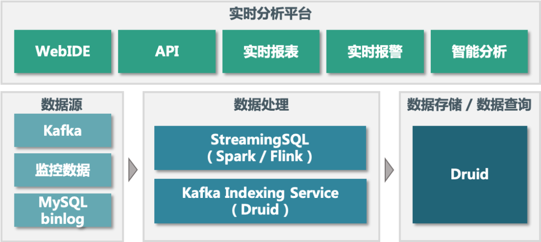 用流任务 ( Spark/Flink ) 实时地计算最终结果,存储在 MySQL 提供进一步服务;问题是每当需求调整,如维度变更时,则需要写新的流任务代码;