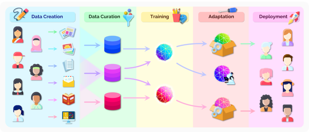 §4.6:数据 数据是基础模型的命脉;模型的训练数据在很大程度上决定了这些模型可以获得哪些能力。数据的中心性并不是基础模型独有的;最近对以数据为中心的AI [Press 2021;Ré 2021]的呼吁表明,管理、理解和记录用于训练机器学习模型的数据具有普遍的重要性。特别是对于基础模型,当前的模式操作使用未指定或不明确的原则选择训练数据,并且在训练数据的性质方面普遍缺乏透明度。我们认为需要一种替代方法来重新构想围绕基础模型的数据生态系统:我们利用数据可视化和管理方面的工作,为基础模型提出一个数据中心。我们阐明了该提案如何关联基础模型的众多以数据为中心的相关考虑因素,包括:选择、管理、文档、访问、可视化与检查、质量评估以及法律监管。