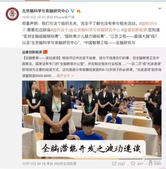 再看一眼被某家全脑教育机构拿出来背书的北京脑科学与类脑研究中心,实力辟谣:与窝无瓜。