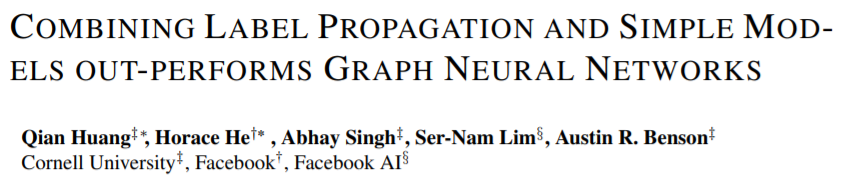 图神经网络(GNN)是学习图的主要技术,并且已经得到非常广泛的应用。但是GNN训练往往需要大量的参数且训练时间很长。这里我们可以通过组合忽略图结构的浅层模型和利用标签结构相关性的两个简单后处理步骤,来获得GNN性能的提升。例如,在OGB-Products数据集上,相对性能最好的GNN模型,我们将参数减少137倍,训练时间减少超过100倍,还能获得更好的性能。