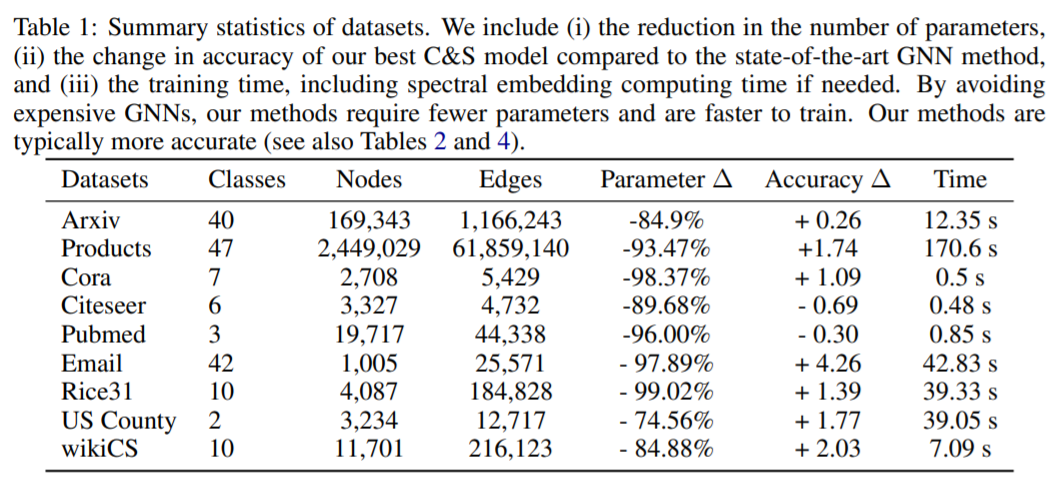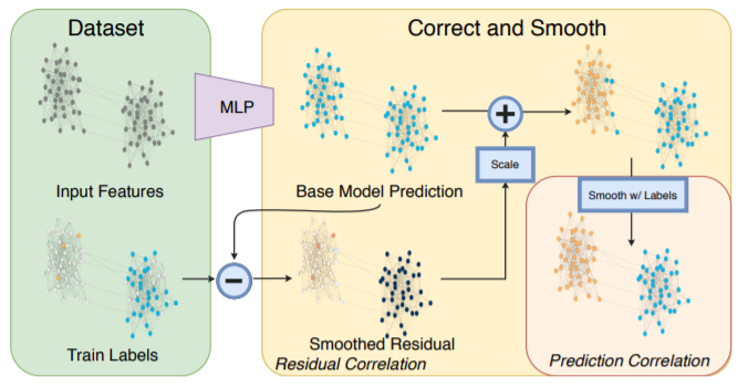 后处理步骤是通过从早期基于图的半监督学习方法对标准标签传播技术进行简单修改而实现的。我们的方法在各种各样的网络上都超过或接近了最新的GNN的性能基准,并且参数和运行时间大大减小。我们将标签信息直接整合到学习算法中,从而获得简单而可观的性能提升。我们还将该技术融合到大型GNN模型中,从而获得性能的提升。