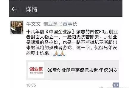 第一代80后创业家茅侃侃走了,他的朋友圈永远地定格在2018年1月23日。