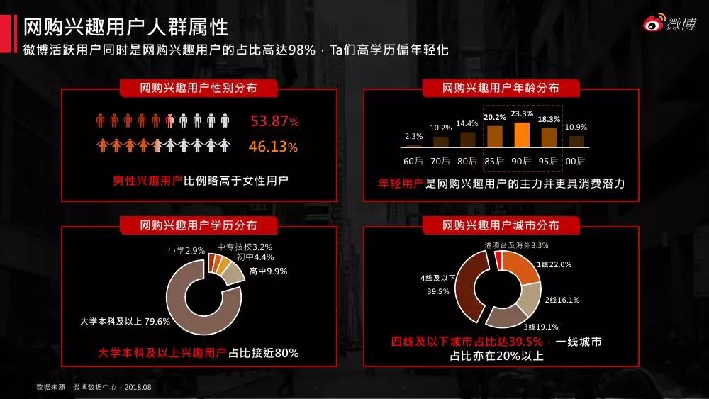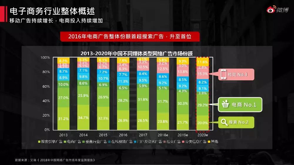 电子商务目前已来到内容电商时期。《2018微博电商白皮书》对微博平台庞大的网络兴趣用户画像、消费特征展开剖析,同时分析了微博电商蓝v的影响力、传播力、内容特征及营销案例,对电商行业的微博运营和营销具有指导意义。