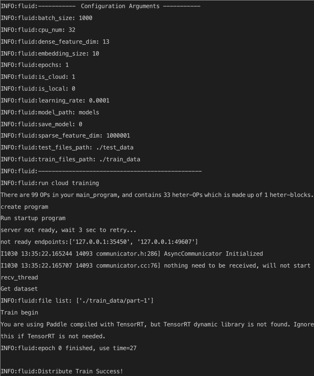 飞桨对分布式训练的启动代码进行了易用性封装,使用 fleetrun 命令即可快速启动分布式训练: