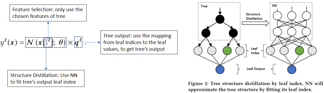 图2:GBDT2NN 数学形式表达(左)和框架(右)